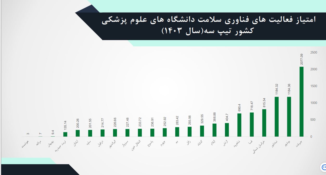 به گزارش دفتر فناوری وزارت بهداشت، درمان و آموزش پزشکی، دانشگاه علوم پزشکی فسا در ارزیابی جامع فناوری سال ۱۴۰۳ ، با افزایش چشمگیر امتیازات نسبت به سال گذشته، موفق به کسب رتبه پنجم در میان ۲۴ دانشگاه علوم پزشکی تیپ سه کشور شد. این موفقیت حاصل تلاش مستمر اعضای هیأت علمی، پژوهشگران، مدیران و کارشناسان حوزه فناوری دانشگاه می باشد.